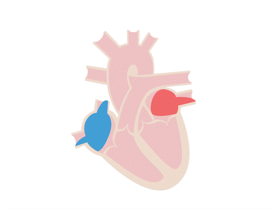 •The left side of the heart has much more muscle than the right. Muscle tissue in the heart contracts to push blood through the heart and into blood vessel called arteries.