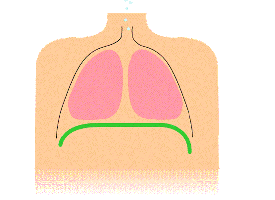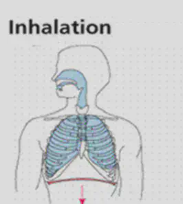 •When you inhale, rib muscles and the diaphragm contract to increase size of the lungs for air to flow in them.