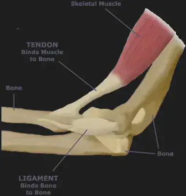 •Flexible Joint – where bones can be moved by muscles. The muscles are attached to the bones by tendons. Ligaments hold the two bones together. Cartilage is a slippery tissue that can allow the two bones to slide past each other.