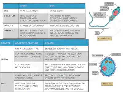 Adaptations of male and female gametes for fertilization