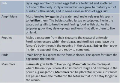 Reproduction in different animals