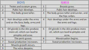 •The changes happen because of sex hormones (chemicals produced in the testes of boys and ovaries of girls)